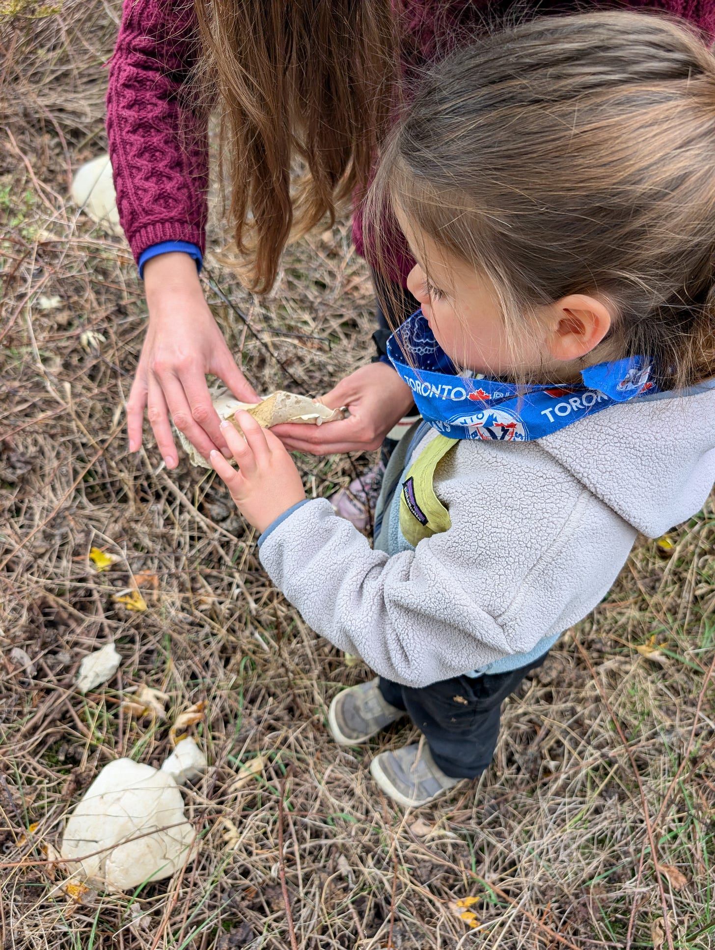 This past weekend, we went on a two-hour hike at a local conservation area and she walked the entire time, which was no small feat for her little legs. But we kept her enthusiasm high by playing hide-and-seek, singing songs together, and taking frequent stops to inspect everything from puffballs to ink beetles to the mysterious rustling sounds coming from a bush just off the path (we never did find out what was moseying about in there).