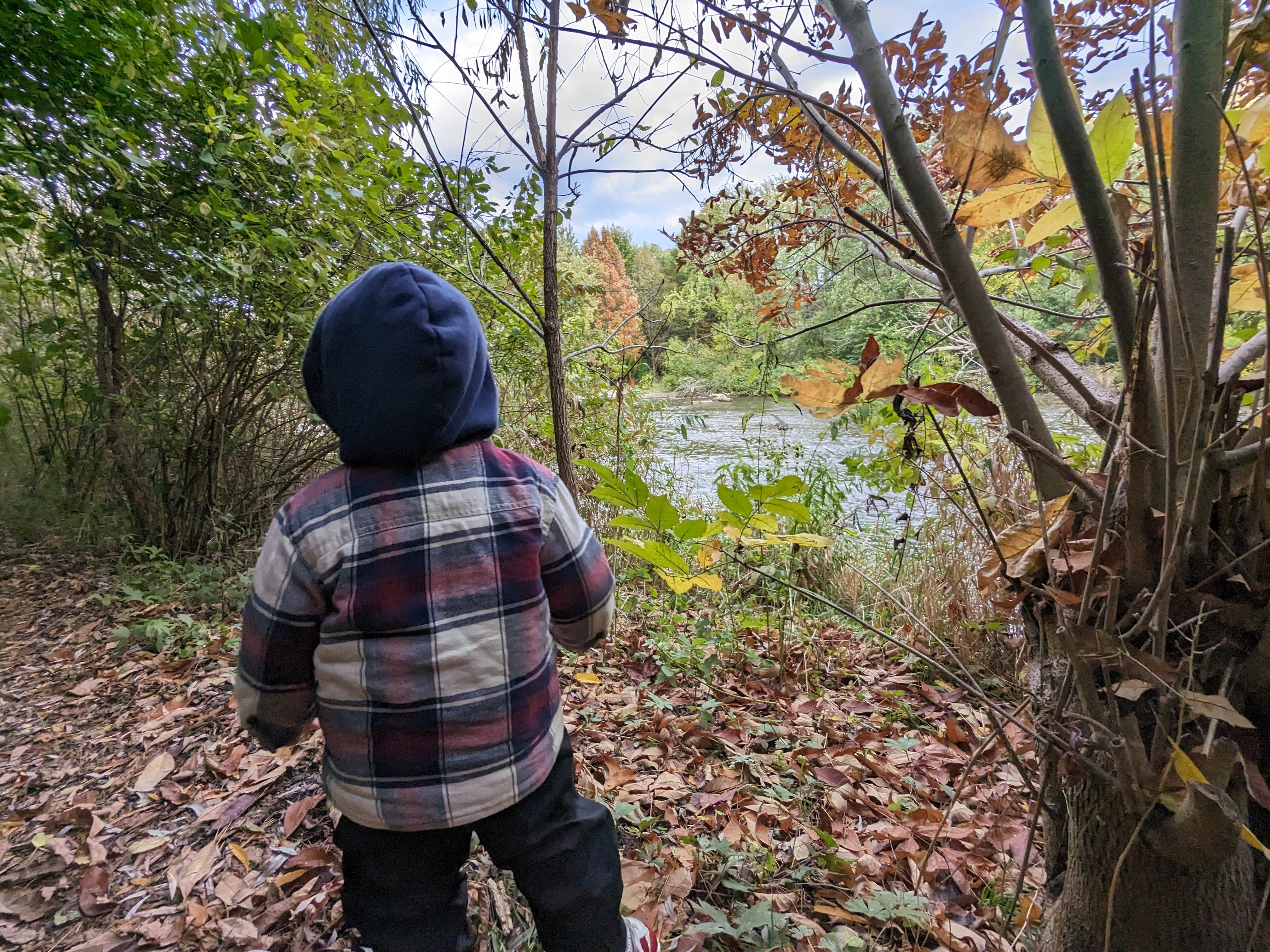 The moment she was able to walk, we’d find spots to take her out of the backpack so she could explore the trails. She’d play in leaves and snow, dip her feet in the water, drag sticks along the path, inspect bugs, and point and babble at everything that interested her.